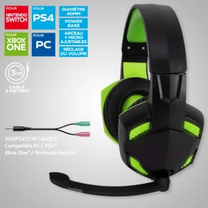 Ajouter au panierCASQUE PRO GAMER 40MM VERT + POWER BASS + RETROECLAIRAGE LED + ARCEAU ET MICRO AJUSTABLES – AMSTRAD