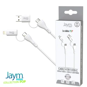 Ajouter au panierCABLE QUADRIPLUG 4-EN-1 USB-C / USB-A VERS USB-C / LIGHTNING BLANC – JAYM® COLLECTION POP