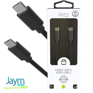 Ajouter au panierCABLE USB-C VERS TYPE-C 1.5M 3A NOIR – JAYM® COLLECTION POP