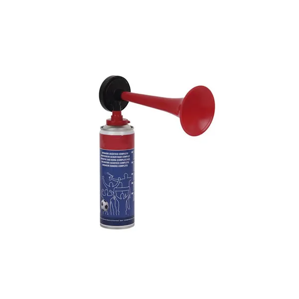 Ce kit est prêt à l’emploi pour déployer un son puissant d’alerte, à longue distance. Il est composé d’une trompe en plastique d’environ 16 cm et d’une soupape surmontée d’un bouton poussoir, pour libérer le gaz propulseur.