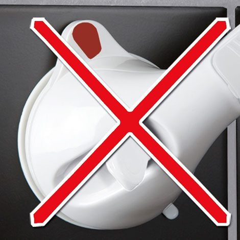 Son système à ventouses horizontales permet une fixation rapide sur toutes les surfaces lisses et non poreuses. Il suffit d’appuyer la plaque d’aspiration contre le mur et de rabattre les leviers pour assurer une tenue ferme. Grâce à un indicateur visuel intégré, vous savez immédiatement si la fixation est correcte : vert pour sécurisé, rouge pour ajuster.