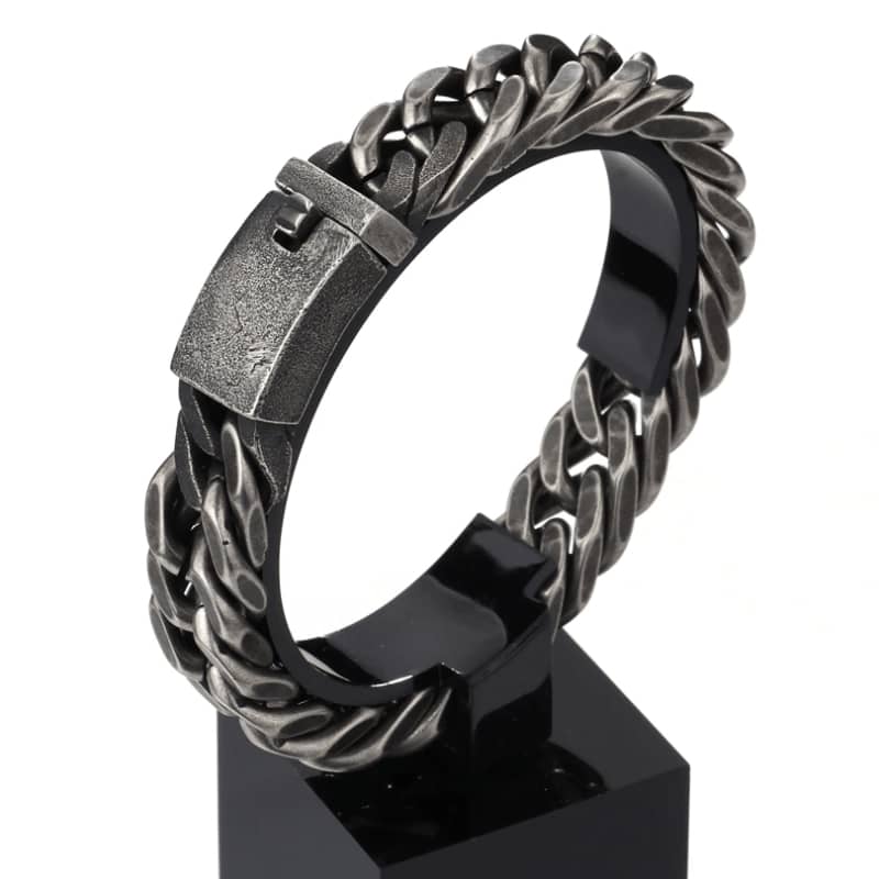 Affirmez votre style biker avec ce bracelet homme en acier inoxydable 316L, conçu pour ceux qui vivent à pleine vitesse. Son maillage épais façon chaîne moto et sa finition effet brut donnent à ce bijou une allure virile et indomptable. Ce bracelet n’est pas qu’un simple accessoire : c’est un véritable symbole d’attitude et de liberté. Il s’adresse aux passionnés de deux-roues, aux amateurs de look rock ou à tous ceux qui veulent afficher leur caractère avec authenticité. Inspiré par l’univers custom, ce bracelet homme s’accorde parfaitement avec un blouson en cuir, une bague skull ou un tee-shirt noir. Il apporte une finition soignée à votre tenue, que vous soyez en ride ou en ville. Facile à porter et à assortir, ce bracelet biker convient aussi bien à un look 100 % moto qu’à un style urbain viril.