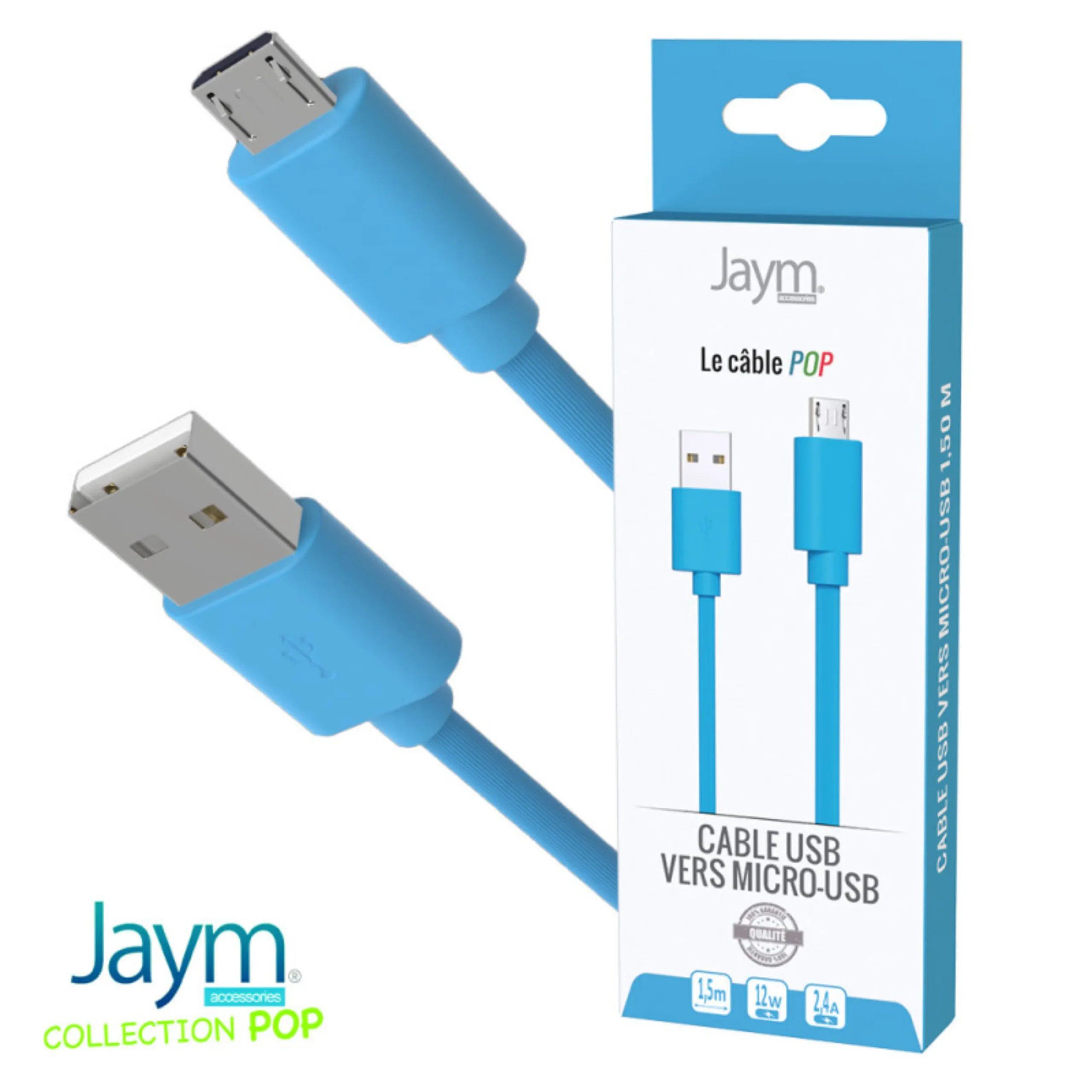 CABLE USB VERS MICRO-USB 1.5M 2.4A BLEU – JAYM® COLLECTION POP