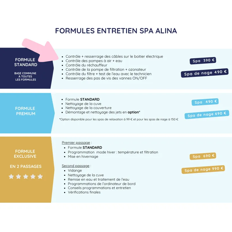 Révision complète du spa, nettoyage en option selon les formules, c’est à vous de choisir !