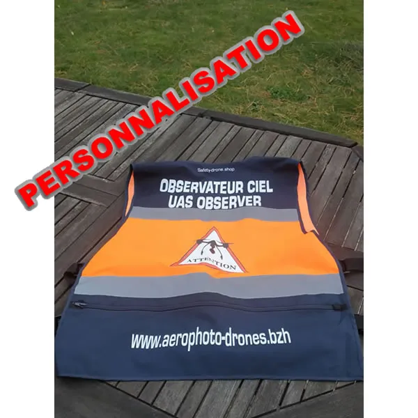 Les gilets sont vendus avec la mention “TELEPILOTE DRONE” en BLANC, au dos, sans personnalisation. Si le produit est en stock, il vous est expédié après validation de votre commande.