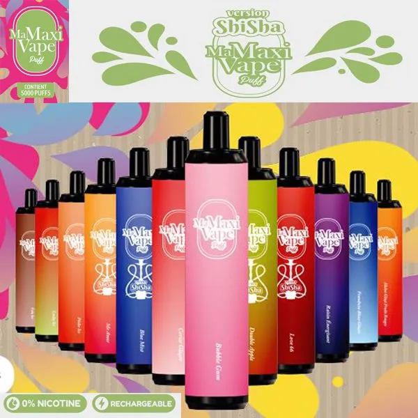 Avec plus de 10 saveurs sans nicotine, la Maxi 5000 Puffs de Ma Maxi Vape propose un éventail de goûts pour satisfaire tous les palais. Chaque saveur a été soigneusement élaborée pour offrir une expérience gustative unique, rappelant les plaisirs d’une vape chicha.
