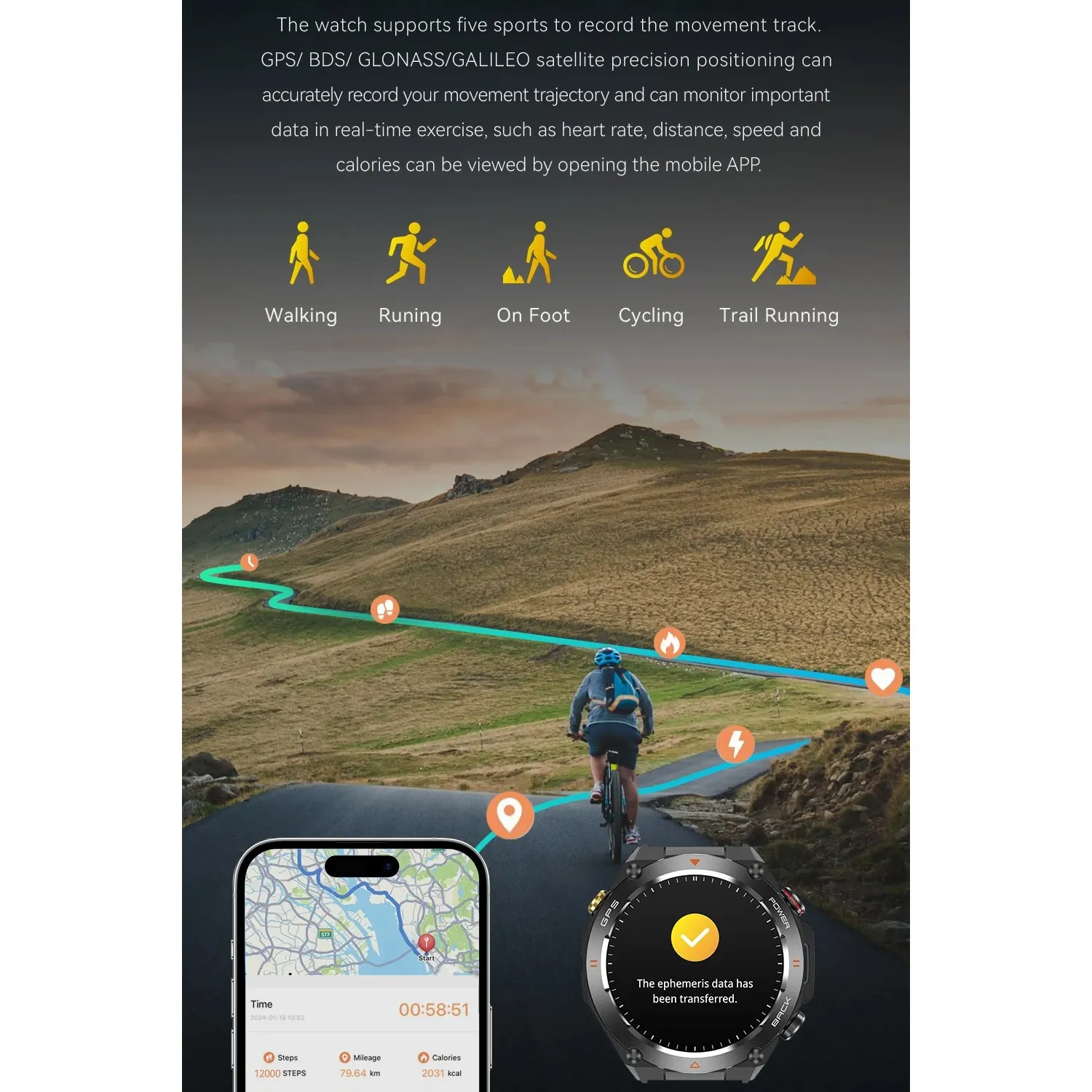Montre Intelligente avec GPS, Boussole Intégrée et Écran Ultra HD