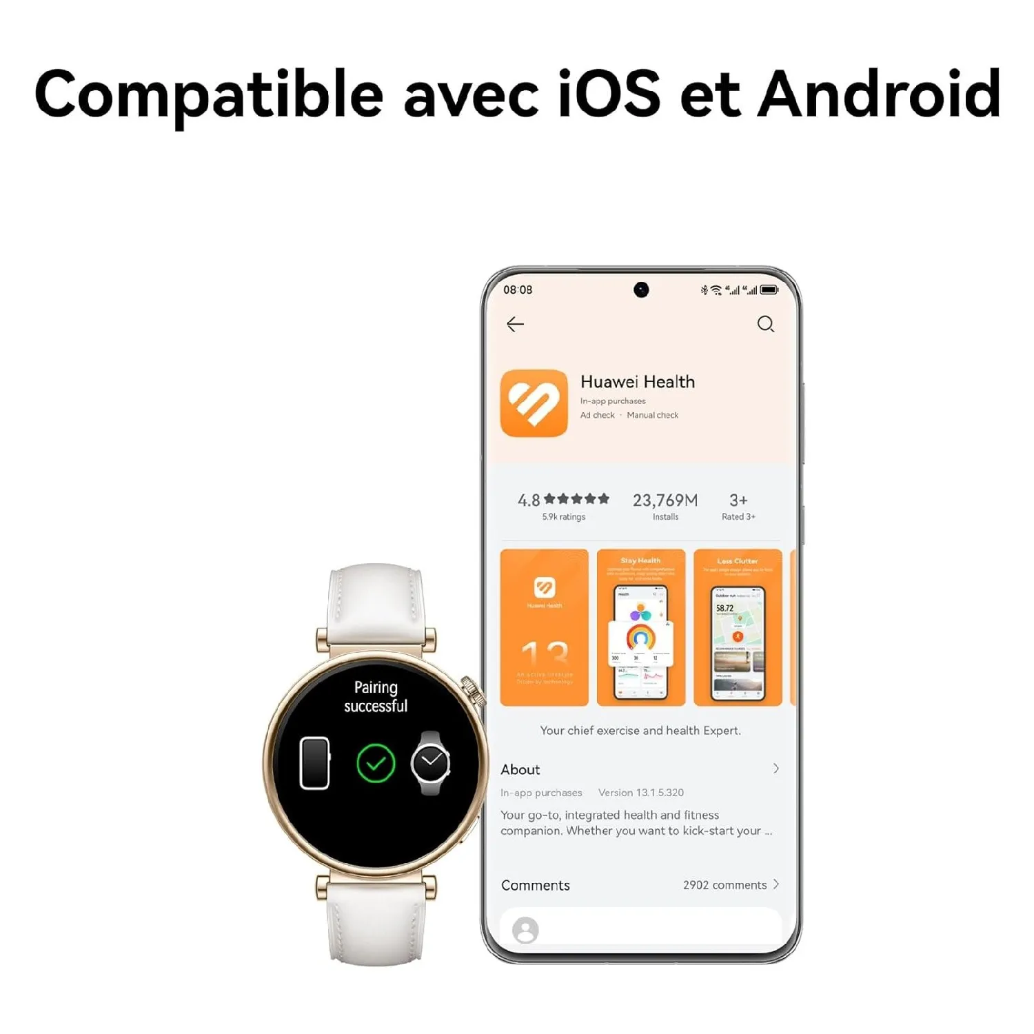 Notre montre de luxe est compatible avec iOS et Android, vous offrant une flexibilité maximale pour une utilisation quotidienne simple et fluide. Que vous soyez utilisateur d’Apple ou d’Android, profitez de toutes les fonctionnalités de la montre sans limite.