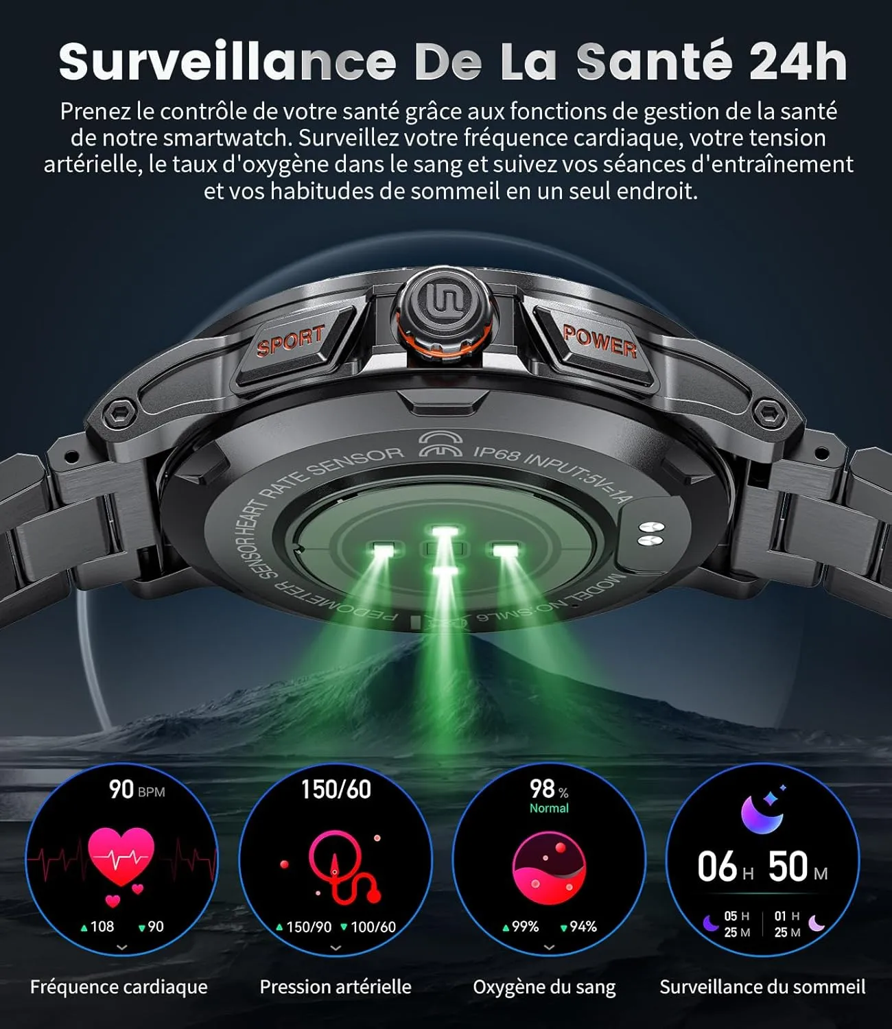 Prenez soin de vous avec les capteurs avancés de notre montre connectée. Elle analyse en continu votre fréquence cardiaque, votre taux d’oxygène dans le sang (SpO2) ainsi que la qualité de votre sommeil. Grâce à ces données précises, optimisez votre bien-être au quotidien et adoptez de meilleures habitudes de vie.