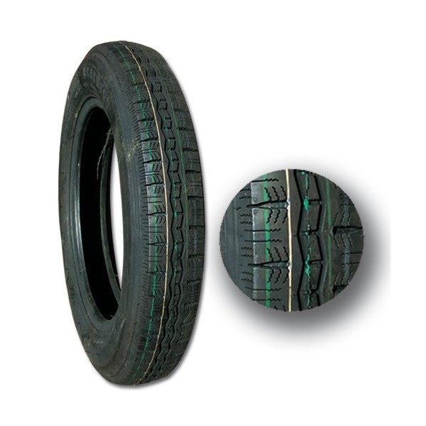 Pneu 125/80 R15 Tubeless. Modèle CLASSIC LS01 pour usage RADIAL Norme E4 Monte d’époque sur Dyane avant 1970, 2cv Berlines, Ami 6. M+S efficace sur Boue et Neige, profil d’époque. Existe aussi en lot x2 réf G2301 ou en lot x4 réf G2302