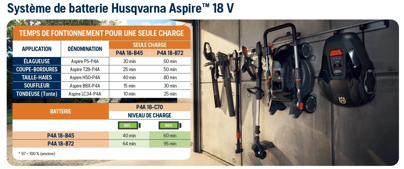 Scie de jardin HUSQVARNA ASPIRE P5-P4A NU – livré avec BATTERIE P4A-18-B45 et CHARGEUR P4A-18-C70