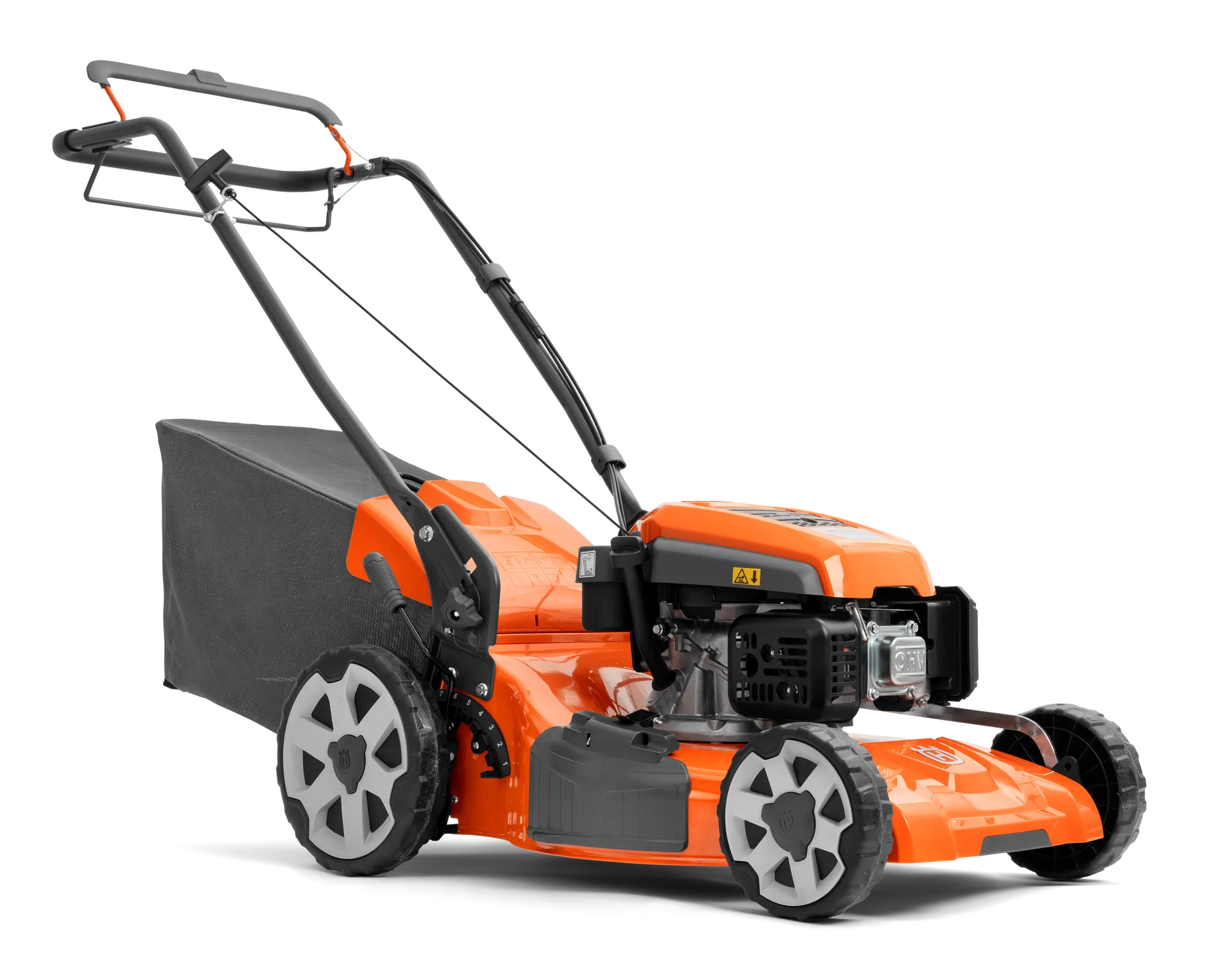 Tondeuse HUSQVARNA grande largeur de coupe 51 cm, moteur HUSQVARNA exclusif HS166A 166 cm3, tractée, bac de ramassage 65 litres et éjection latérale