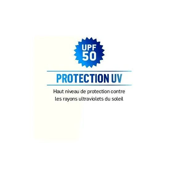Il est élaboré à partir de microfibres polyester (95 %) recyclées issues de bouteilles en plastique et d’élasthanne (5%), Ultra strech, il est étirable dans les 4 sens pour plus d’élasticité et de confort. De plus, il et offre une protection contre les rayons UV (UPF50).