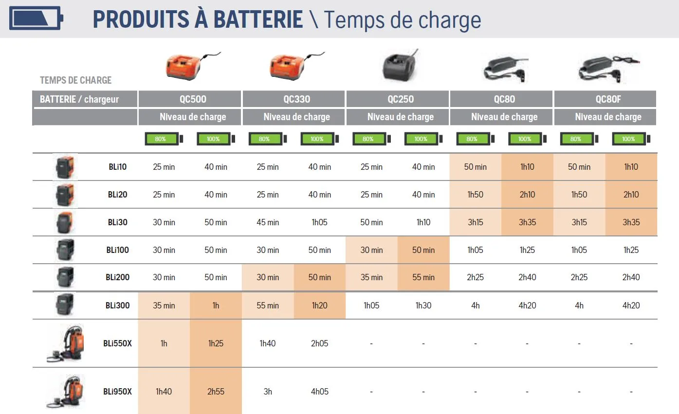 Vendu NU – choisir dans la rubrique autres matériels BATTERIE et CHARGEUR suivant Tableau d’autonomie & tableau temps de charge